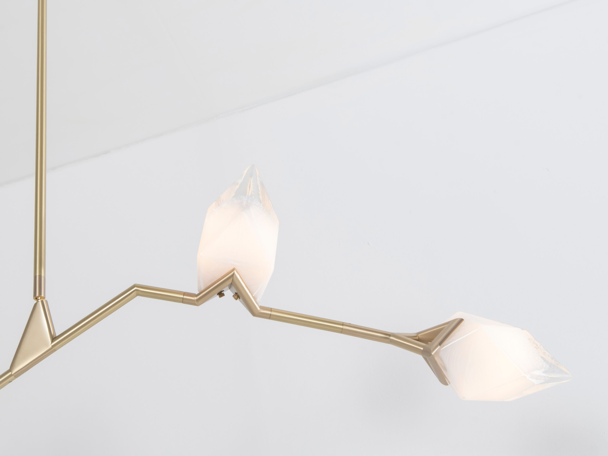 Seed 4.1 branches from a central stem into four faceted shades that cast a warm, diffused glow. Its angular geometries make for a captivating centerpiece — a sculptural accent that brings the elegance of nature’s forms into interior spaces. Shown in Brushed Brass & Ivory Glass.